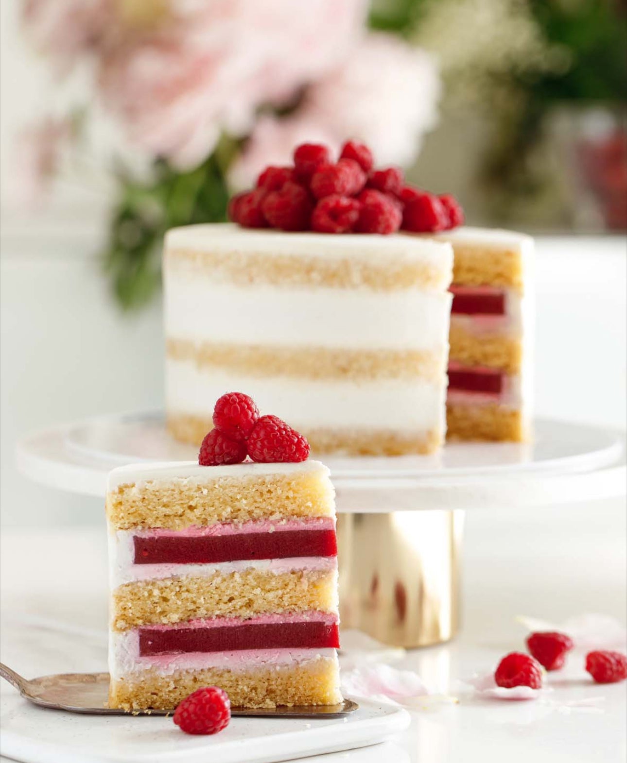 Vegan Low Calorie Coconut Cream and Raspberry Cake
