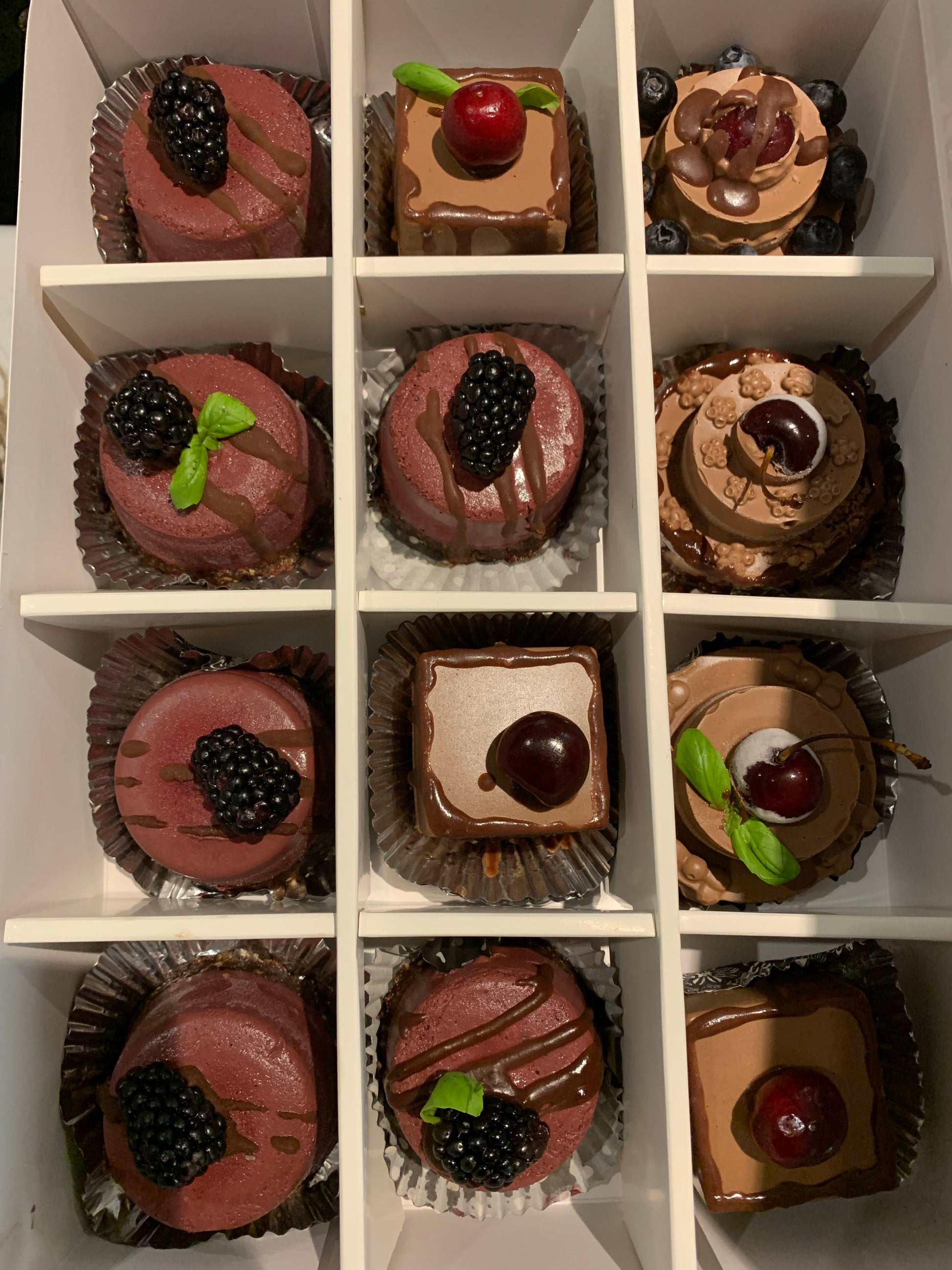 Ingredients: berries, fruits, raw cacao butter, raw cacao powder, extra virgin coconut oil, agave and maple syrups, almonds, walnuts, cashews, vanilla, dates.