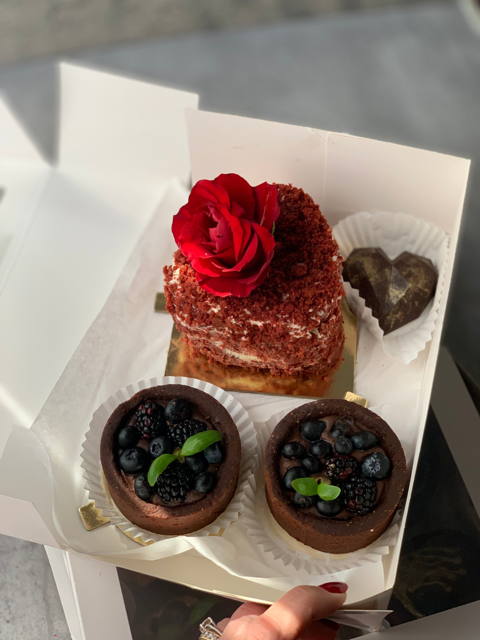 chocolate blueberries  and matcha raspberries