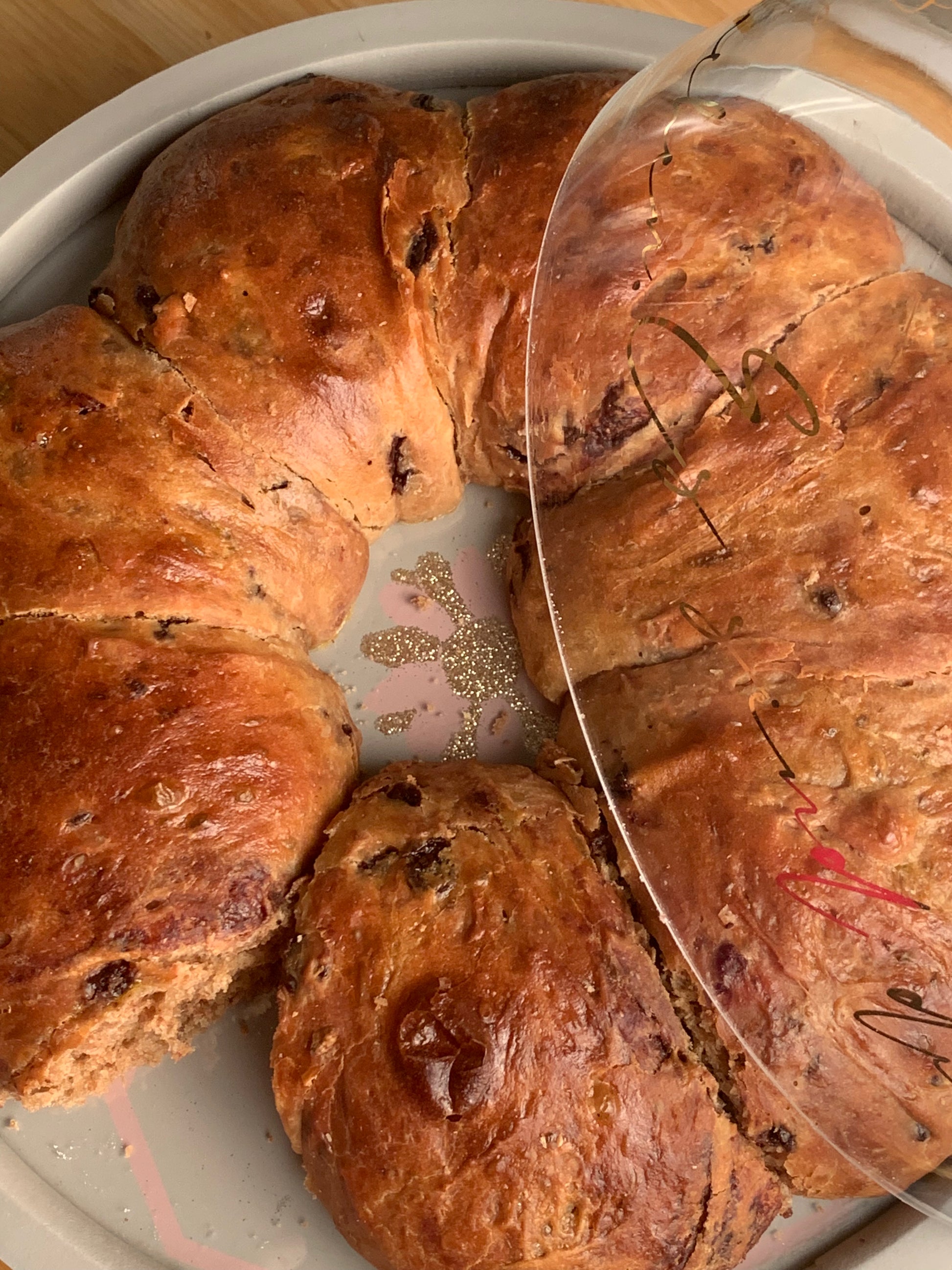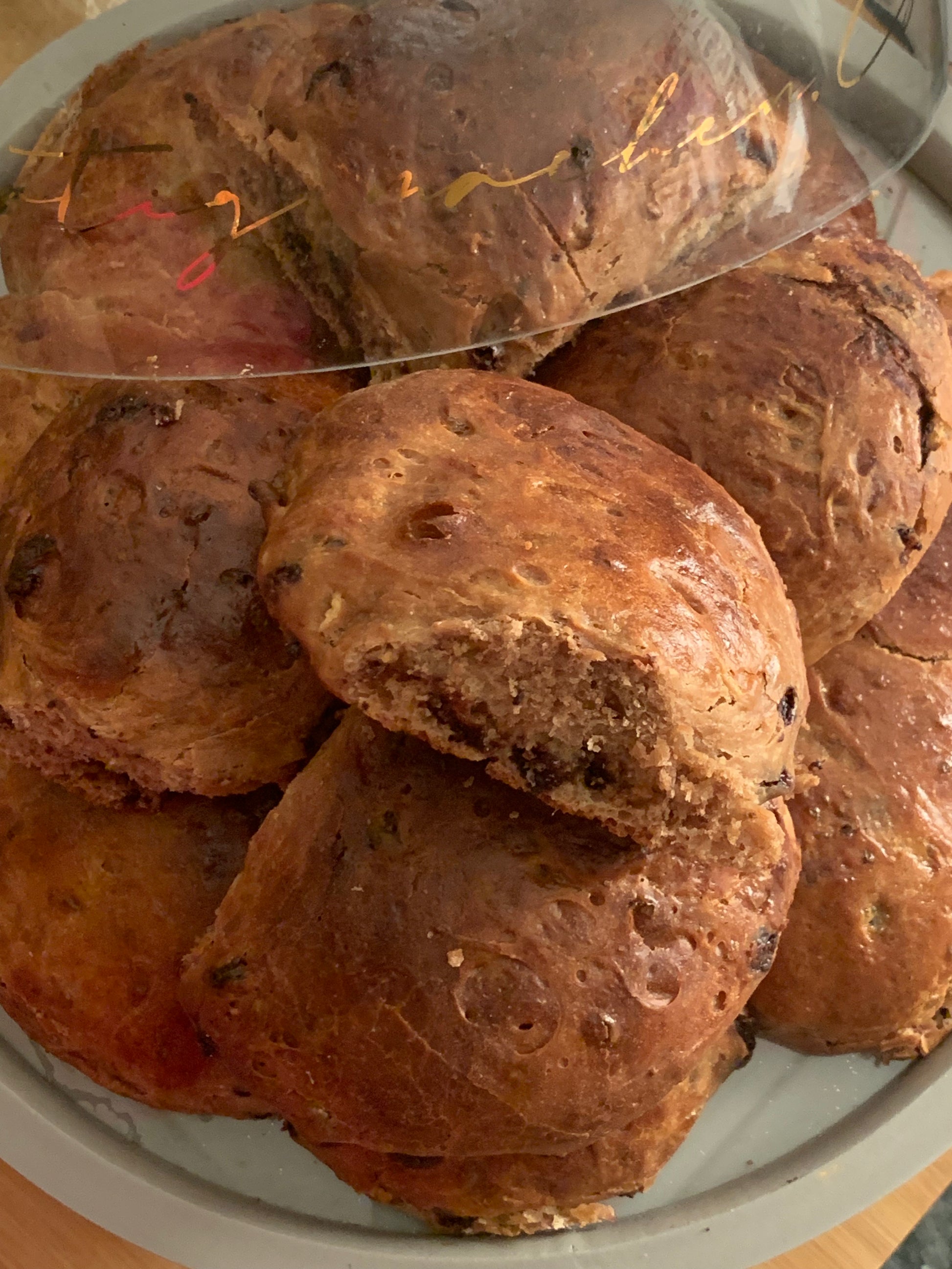 Ингредиенты: мучная смесь GF, молоко, яйца, дрожжи, кусочки темного шоколада.