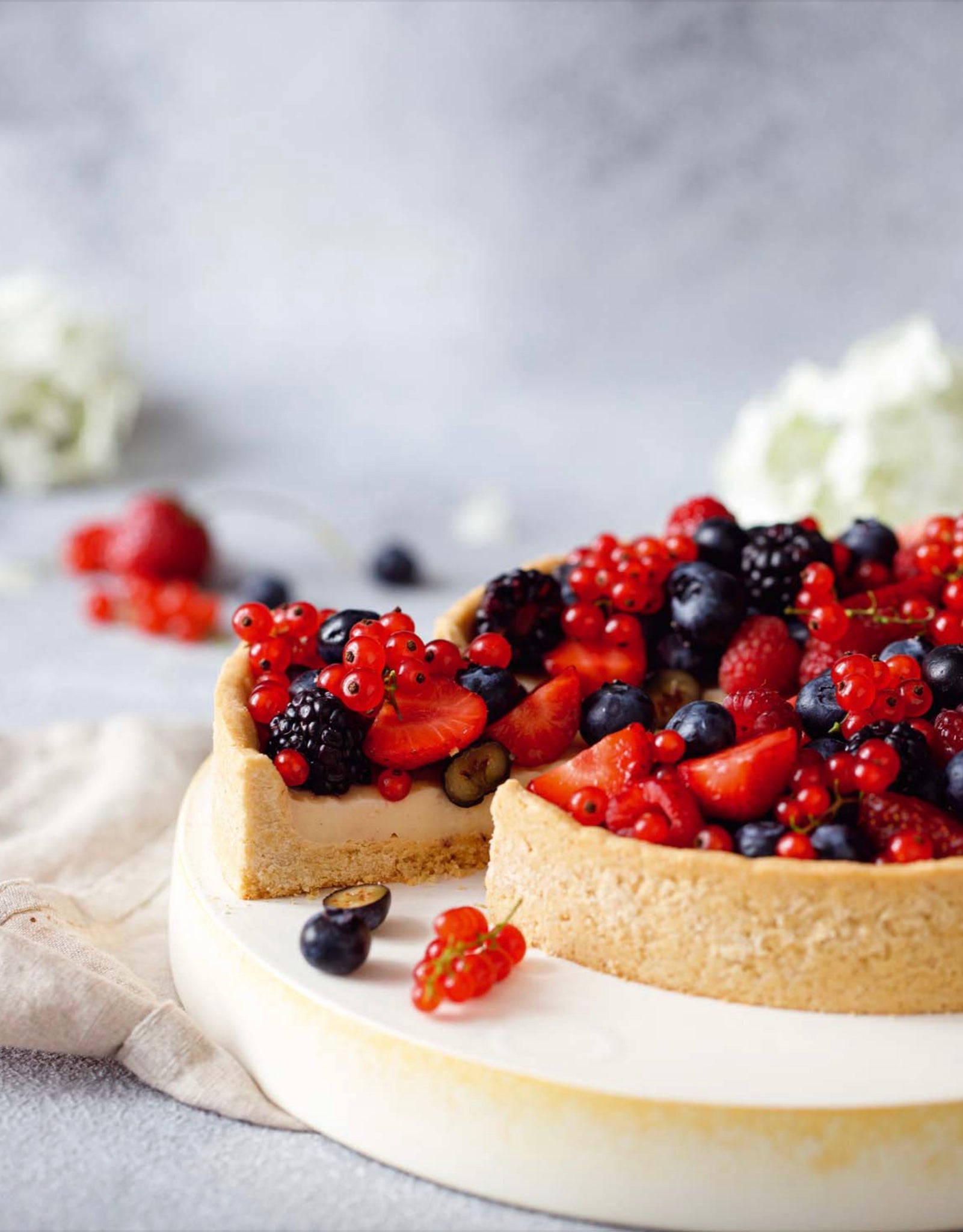Ягодный пирог с ванильным кремом и ягодной смесью.