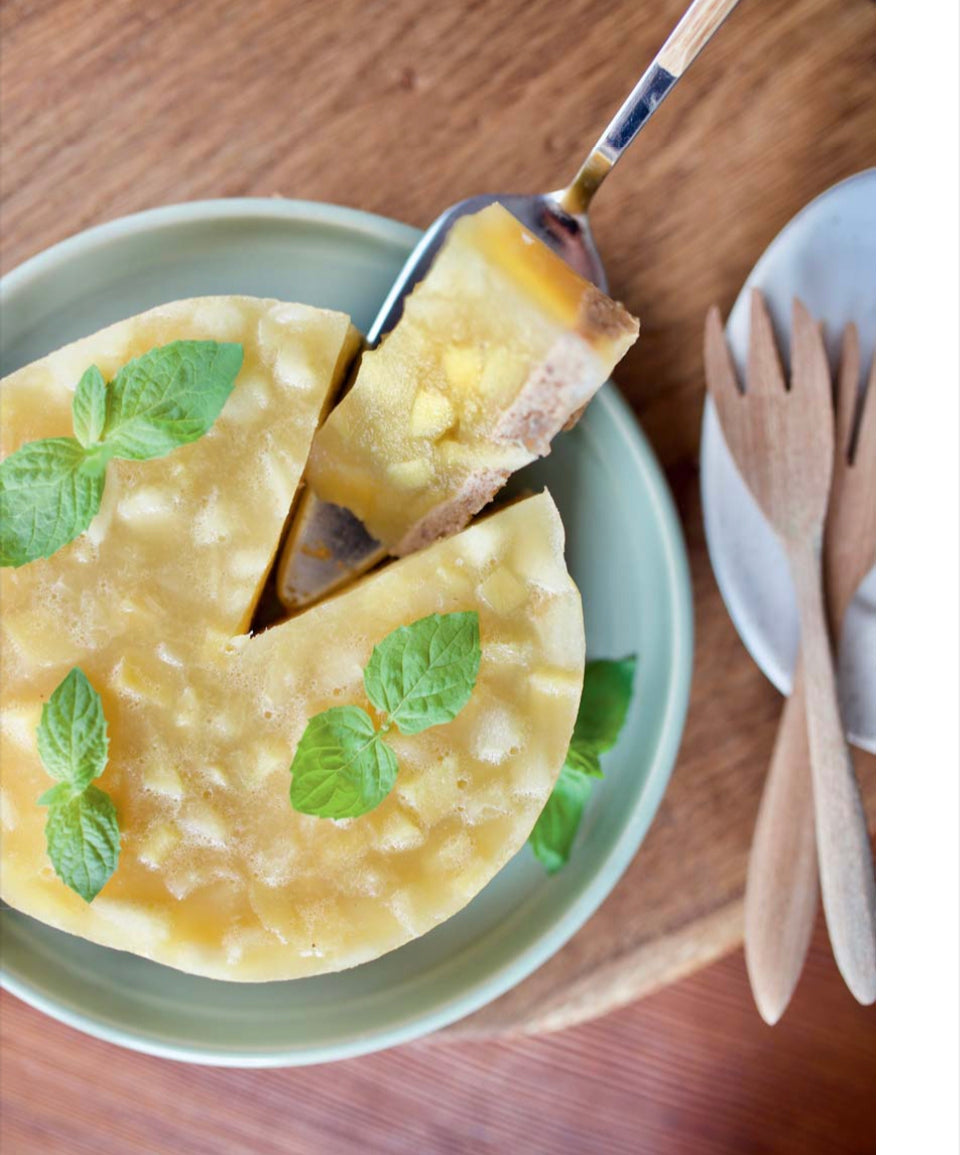 Ингредиенты: мука спельты, мука из фундука, трикотажное масло vovv Cv, кокосовое молоко, семена чиа, манго, яблоки, апельсиновый сок, агар-агар, разрыхлитель.