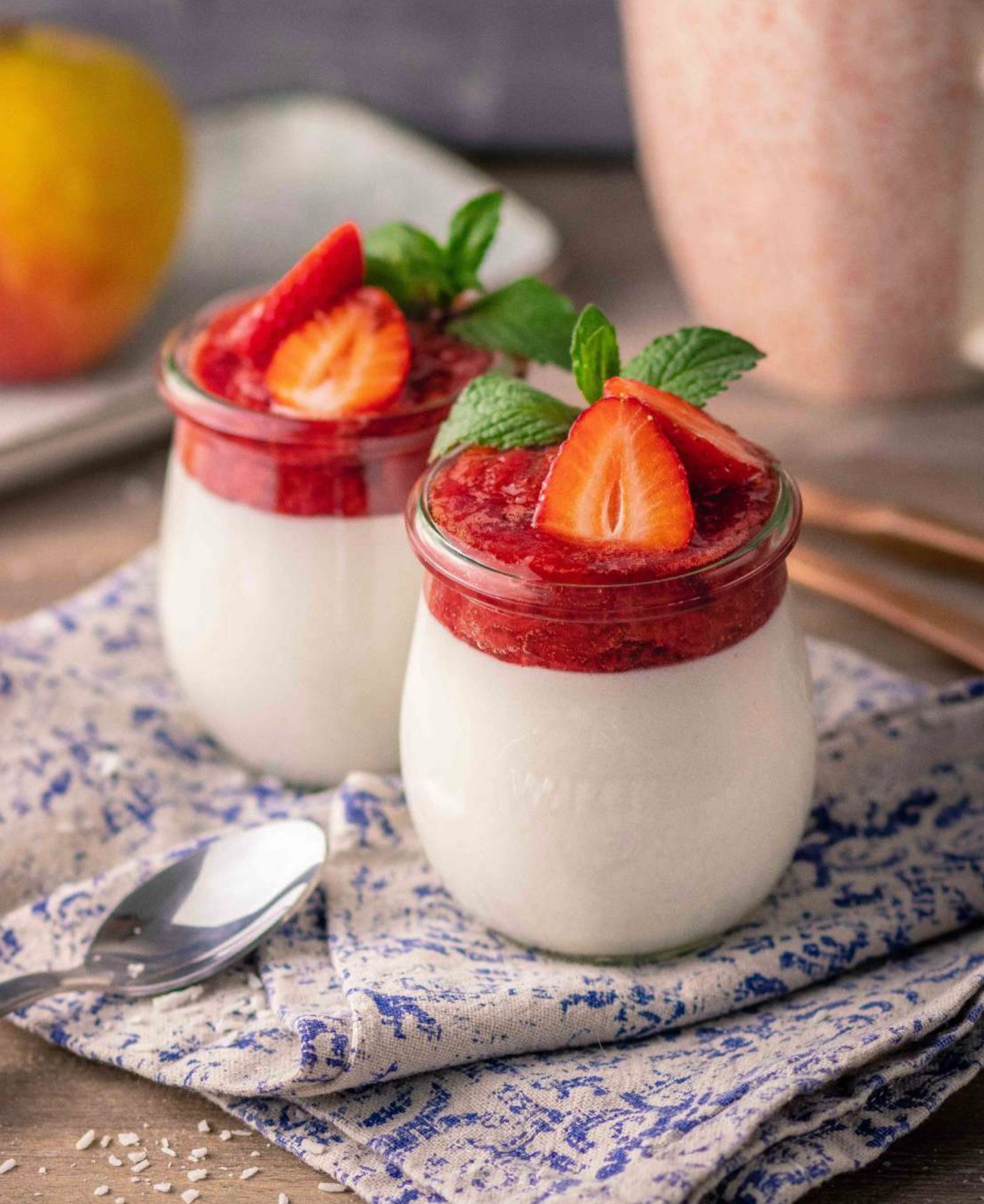 Без глютена, без сахара, без молочных продуктов, без яиц, ванильная панакота с клубникой в чашке