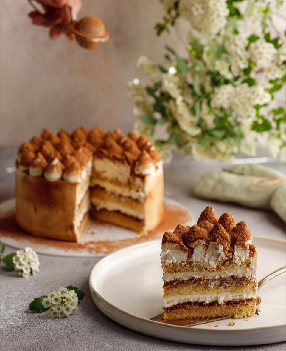 Ингредиенты: органическая мука, семена льна, уксус, соевое молоко, органический сахар, веганское масло, веганский сливочный сыр, кокосовое взбитое молоко, несладкий какао-порошок, веганский сливочный сыр, дамские пальчики без молочных продуктов, кофе, лимон, разрыхлитель, ксантановая камедь, ваниль