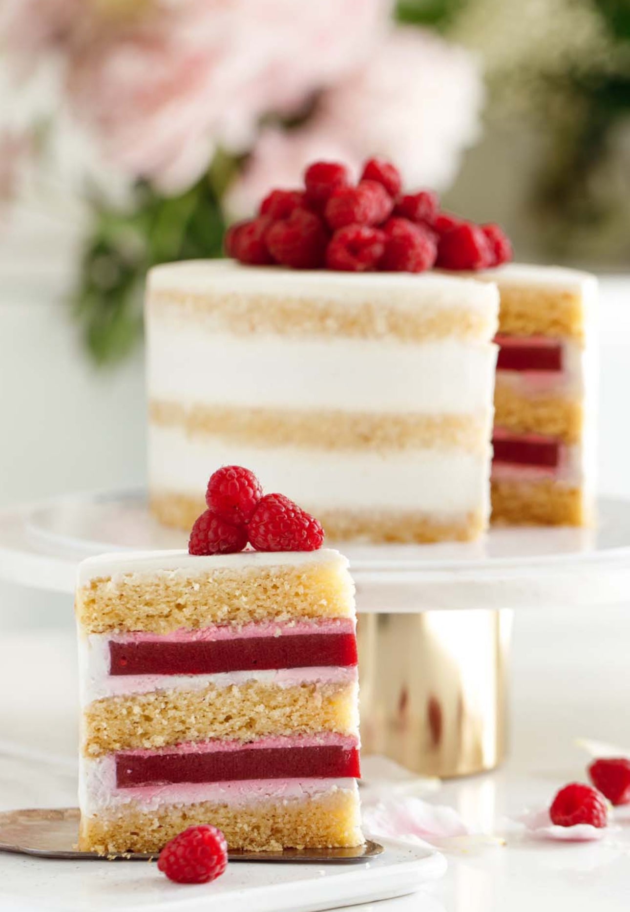 Ingredients: gluten-free flour, coconut cream, coconut oil, organic sweetener, vegan double cream, raspberries, agar, baking powder, vanilla